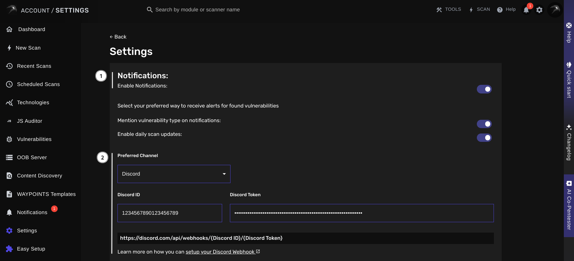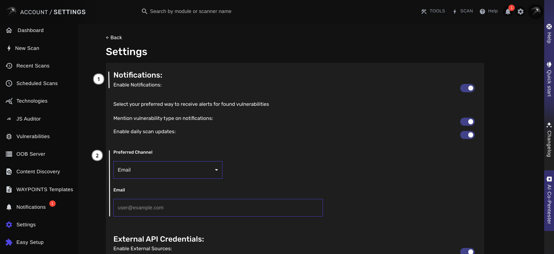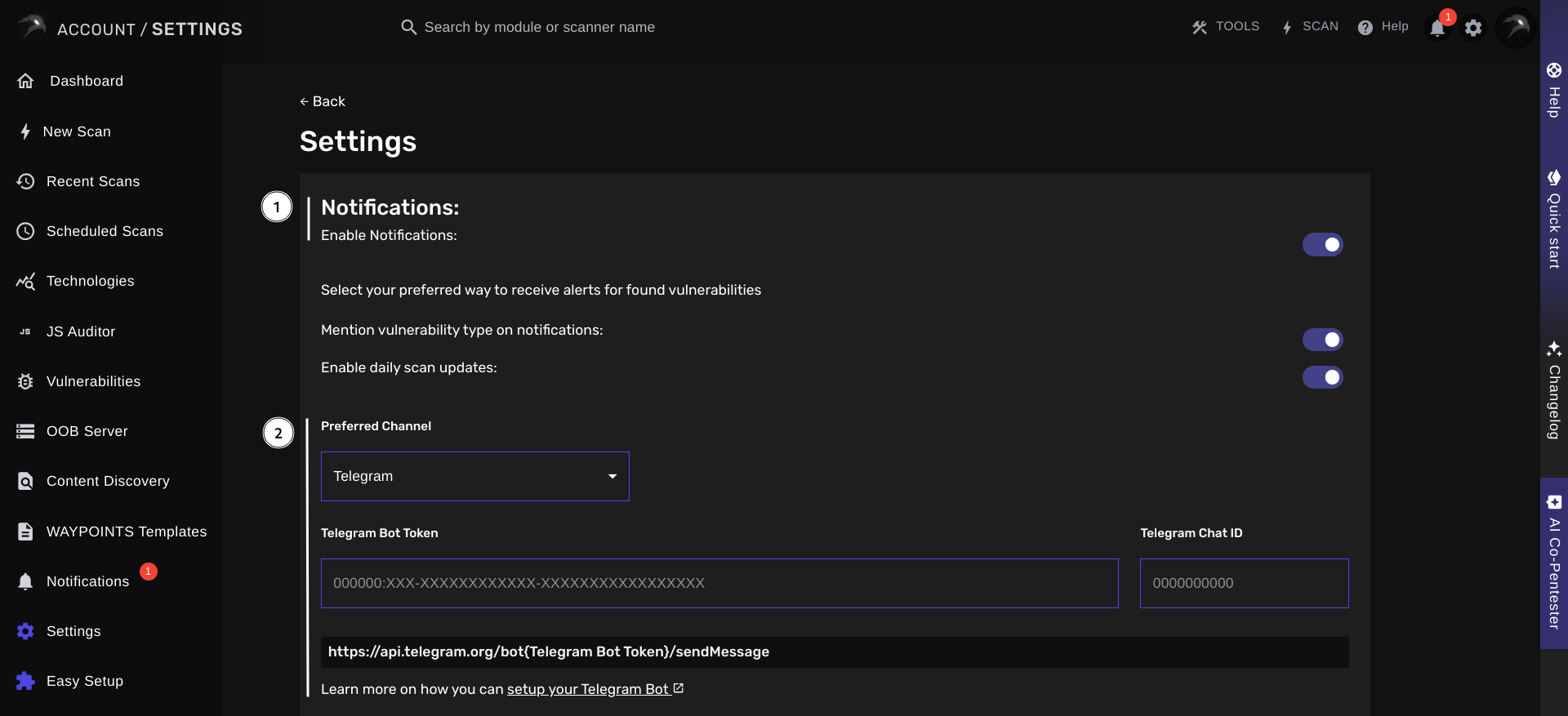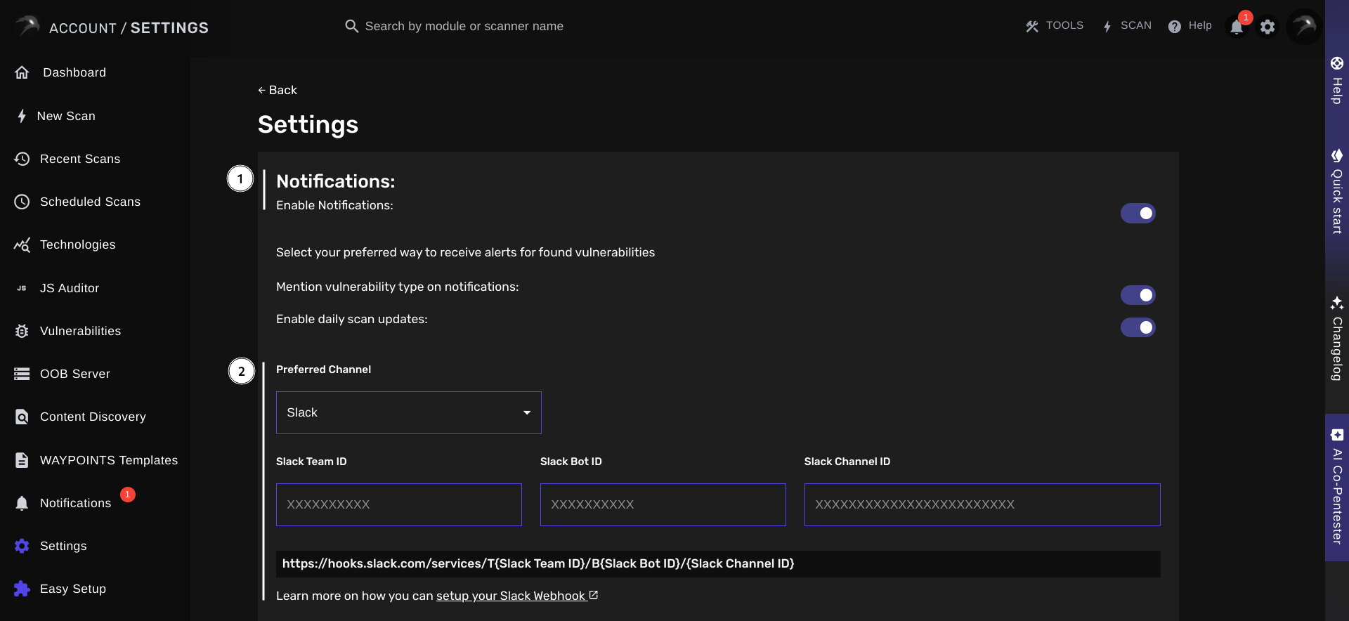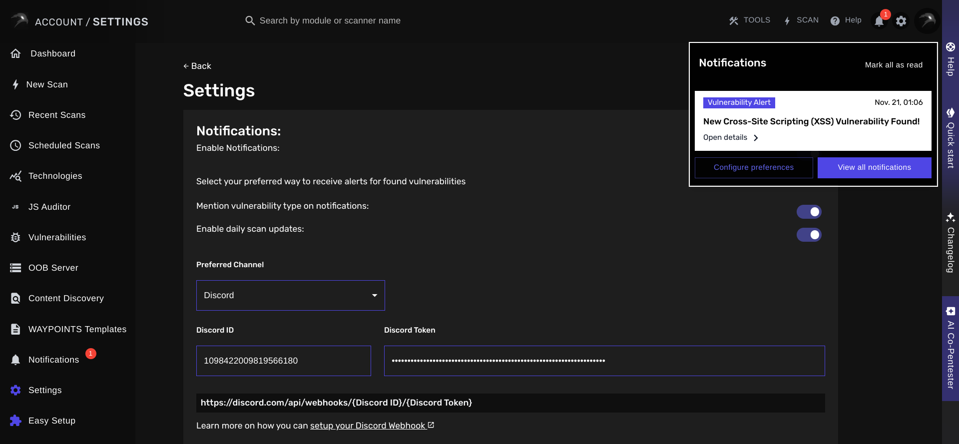 BLACKBIRD can be configured to deliver real-time notifications for discovered vulnerabilities, scan status changes and OAST Server invocations.Setting Up Notifications