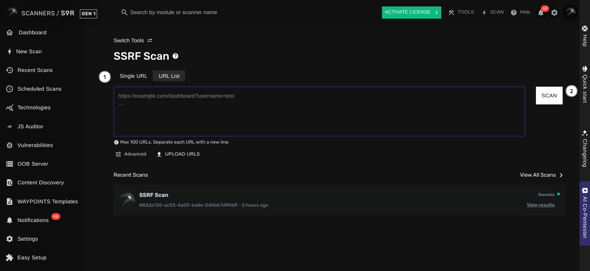 S9R is an advanced Server-Side Request Forgery (SSRF) scanner equipped with the following capabilities:Server-Side Request Forgery (SSRF) Detection